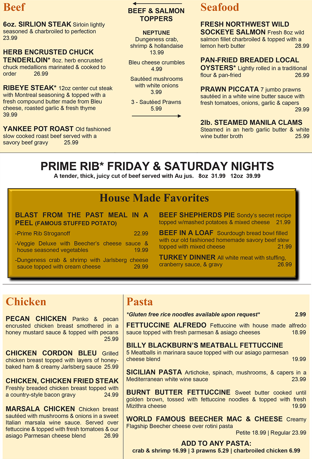 *Department of Public Health Notice: Meats or eggs that are undercooked to your specifications may increase your risk of foodborne illness, especially if you have certain medical conditions. Please inform your server of any food allergies.