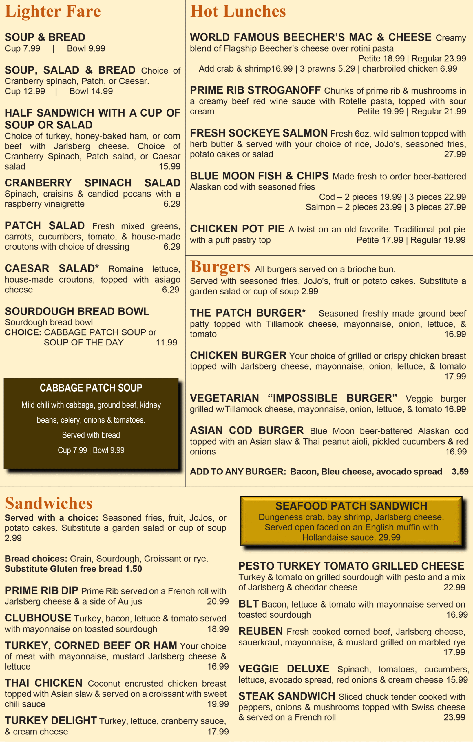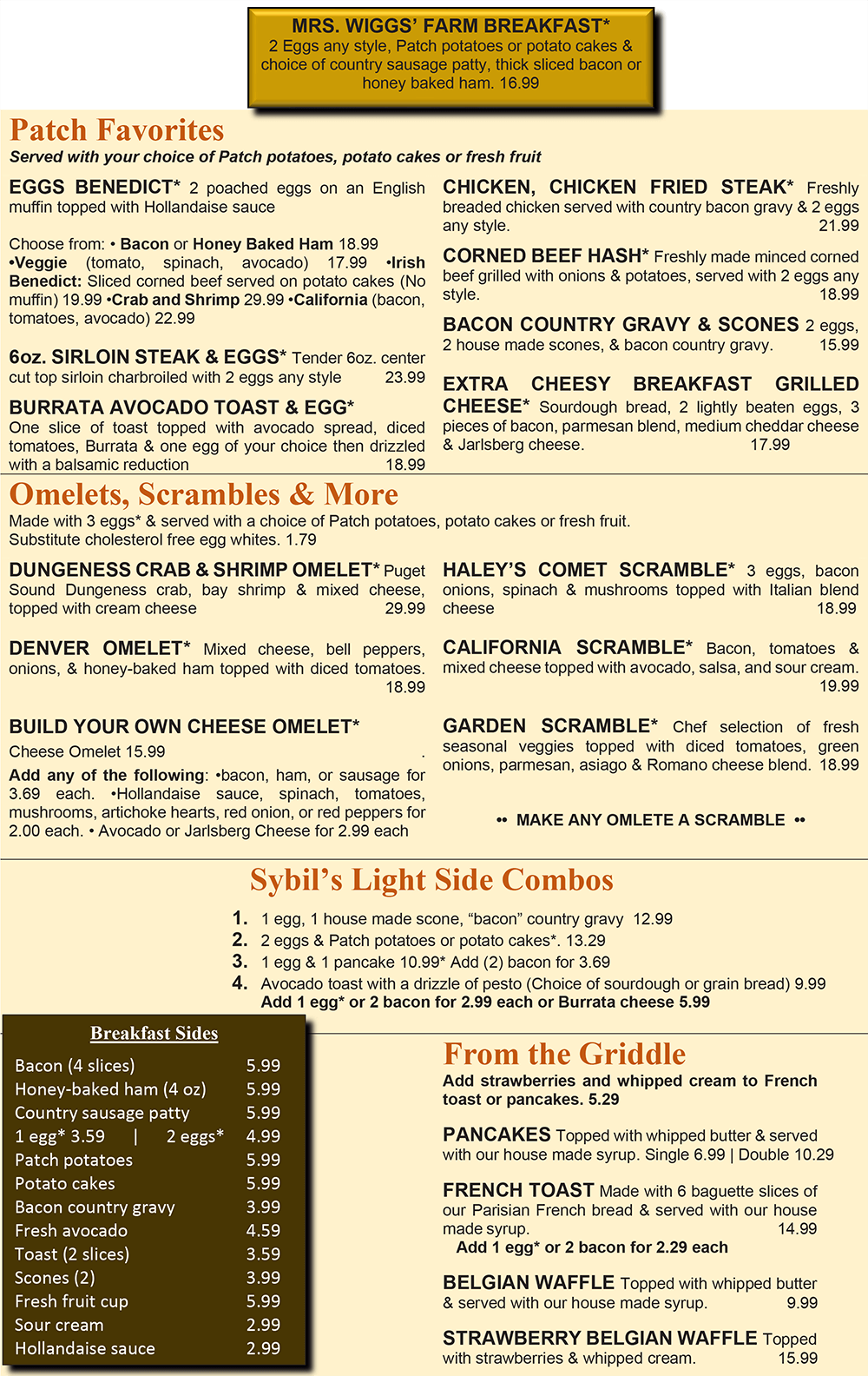 We offer a singularly unique menu of home-style cooking and gourmet entrees that rival the best restaurants in Seattle, and have been doing so for over 30 years. Serving up breakfastlunch and dinner every day of the week in a relaxed, comfortable atmosphere, the Cabbage Patch has been a long time favorite of guests all over Washington State.